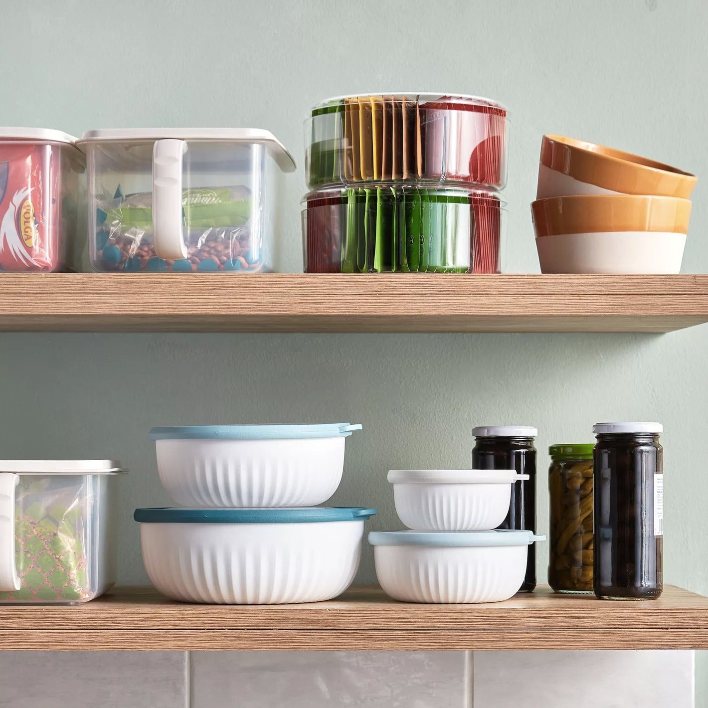Perfect for keeping your kitchen essentials organized, this lovely set of bowls is a must-have. It comes with a lid and is microwave and freezer -safe that adds to its utility. Made of plastic, it is the choicest pick.