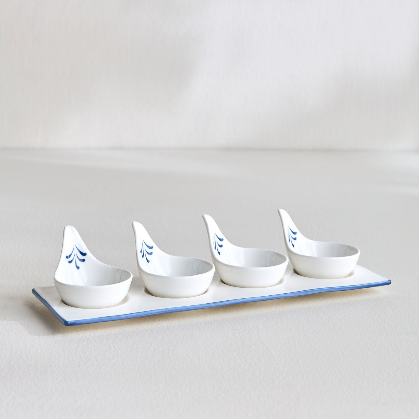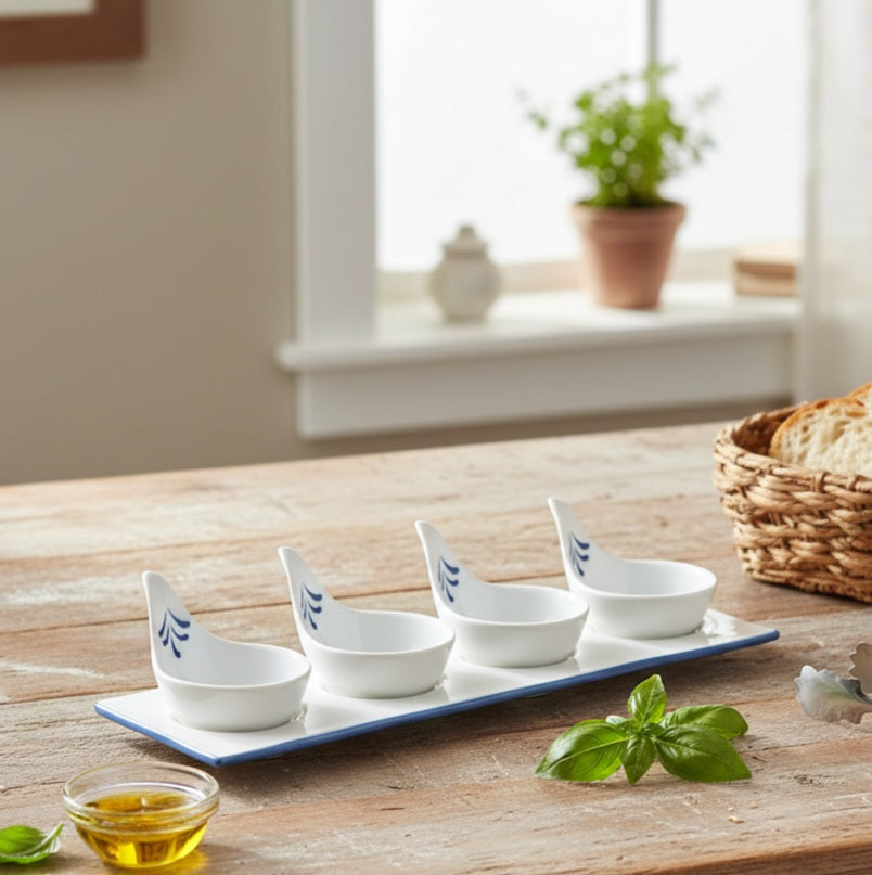 Enhance your dining experience with this beautiful and functional four-piece porcelain appetiser bowl set with tray. Perfect for serving a variety of appetisers, dips, and snacks, this set combines elegance and functionality, making it a must-have for any host. The classic drop design adds a touch of sophistication to your table, making them suitable for both casual and formal gatherings. The set includes a stylish tray that keeps the bowls organized and makes serving easy and elegant.