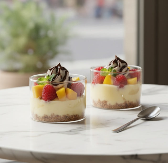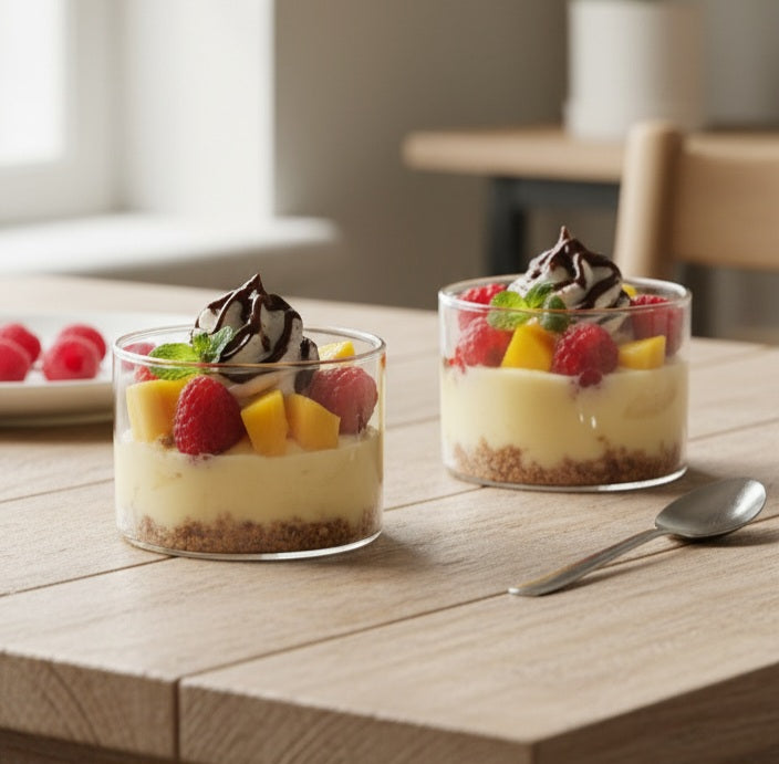 - The glass has a wide shape which allows you to also use it as a bowl for serving delicious desserts.