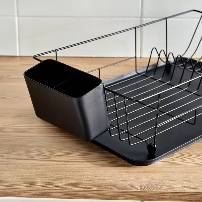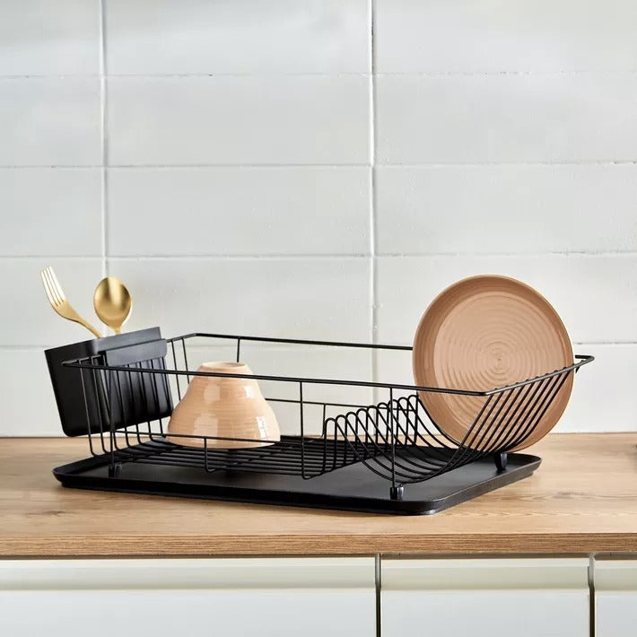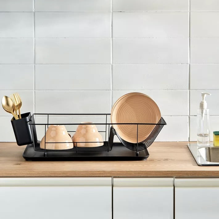 Organize your washed vessels in a modern and practical way in this single-tier dish rack which is made of stainless steel and is rust-proof. Featuring a metallic finish, this kitchen necessity is shiny and can be washed easily for further upkeep.