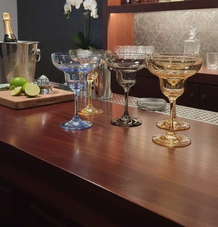 Elevate your cocktail experience with this stunning set of six margarita glasses, each crafted from premium quality glass in vibrant, distinct colours. With a generous 295ml capacity, these stem glasses are perfectly sized for classic margaritas and frozen cocktails. The elegant design combines functionality with visual appeal, making them ideal for entertaining guests or adding sophistication to your home bar. Whether you're hosting a dinner party or enjoying a casual evening, these multicoloured glasses transform every sip into a celebration. Durable and beautifully designed, they're the perfect addition to any glassware collection.