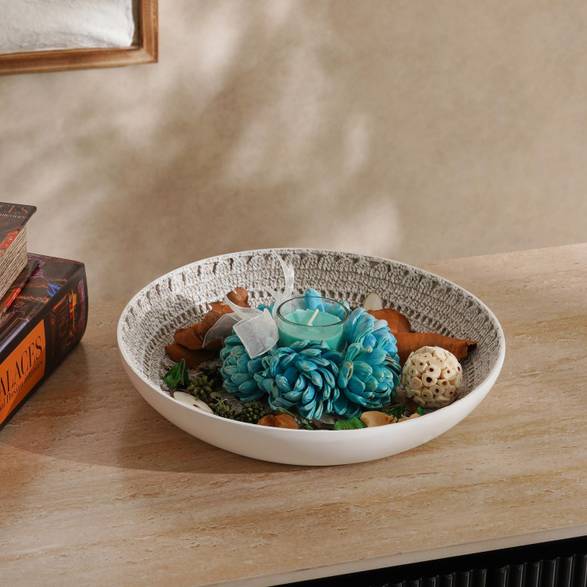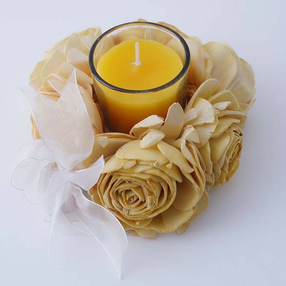 An Elegant candle that is perfect for adding a touch of sophistication to any room. The candle measures 12cm in diameter and 6cm in height, making it the perfect size for placing on a table or shelf. The lemon yellow color is bright and cheerful, adding a pop of color to any space. The ornate design of the candle is intricate and detailed, adding a touch of luxury to the overall look.
