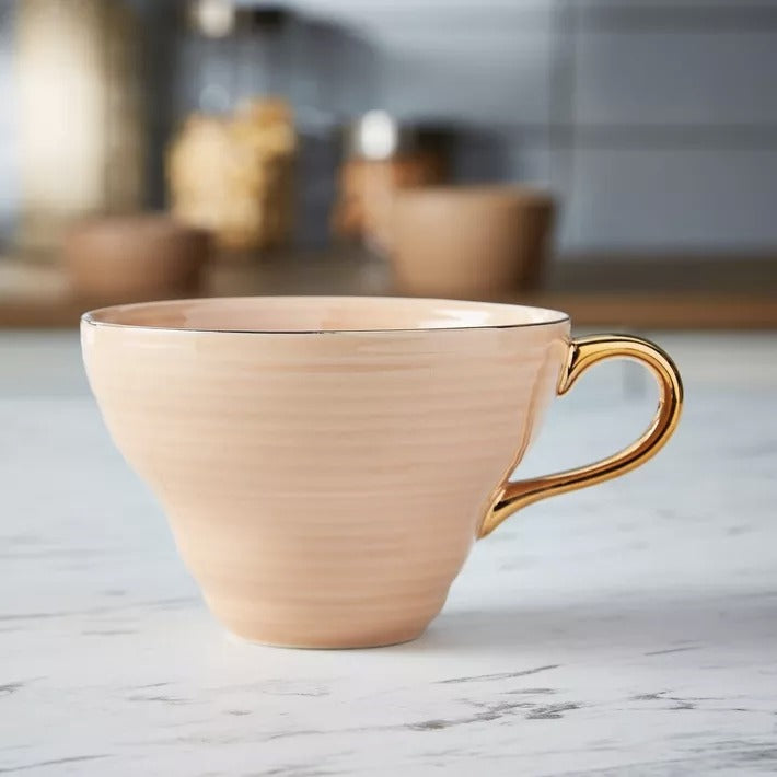 Start your mornings with a bright smile and a fresh brew of coffee in this classy mug. Perfect for everyday use, this mug is crafted from ceramic and features a handle that makes it easy to use. Furthermore, it can be cleaned in a dishwasher.